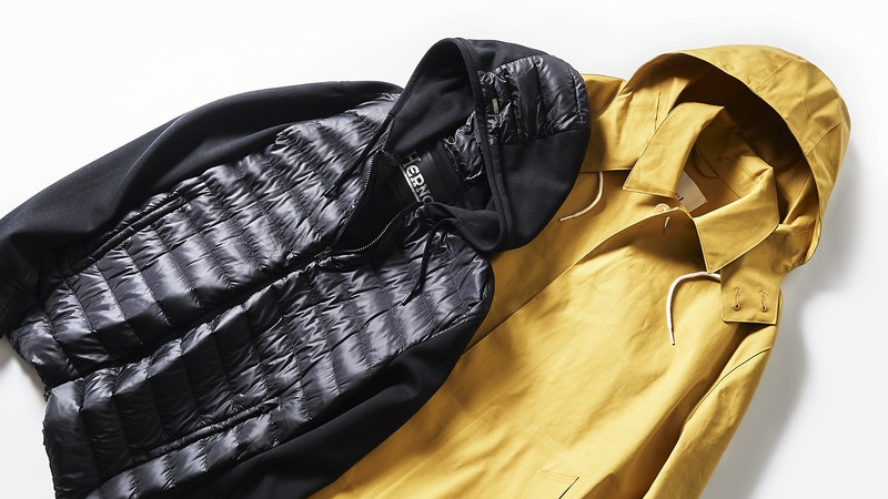 また、フードは被らずとも着こなしをスポーティかつ快活に見せる効能も兼備しており、そういう意味でも見逃せないディテールなのです。機能的にして“若見え”効果も十分に期待できるフード付きのアウター。
