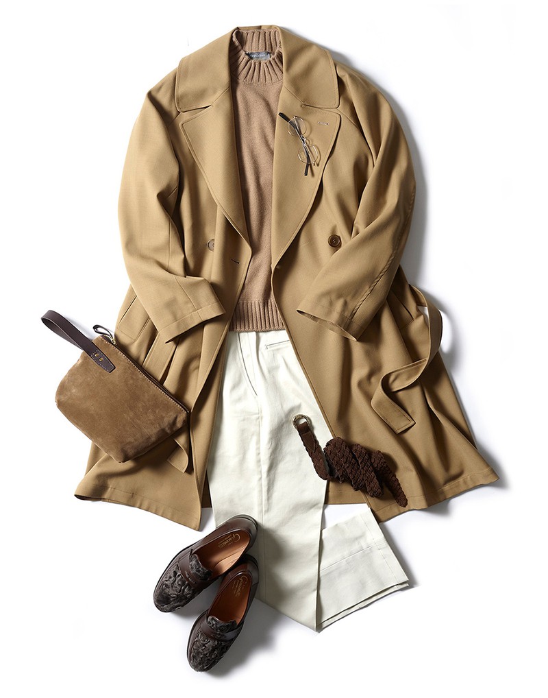 スエード鞄やファー付きの靴など温かみのあるアイテムもラテカラーと相性がよく、柔らかな印象にマッチ。ニットにカシミアのを選ぶなど、上質感の演出もお忘れなく♪