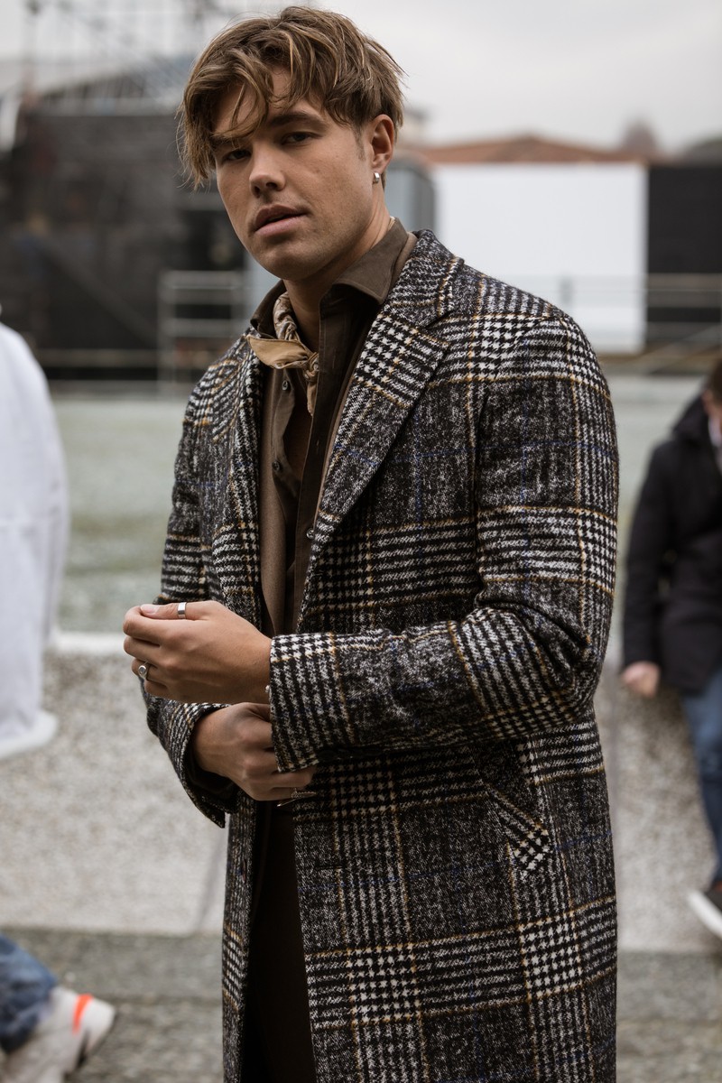 海外のスナップに映る男性たちのその姿、キマって見えますよね。その理由のひとつとして、巻物ではないかと。海外スナップの男たちは巻物使いが自然でうまいこと。決して強いトレンドというわけではありませんが、冬の装いを一気に大人っぽく、お洒落に見せる定番小物として、「ストール」・「スカーフ」がオススメです。