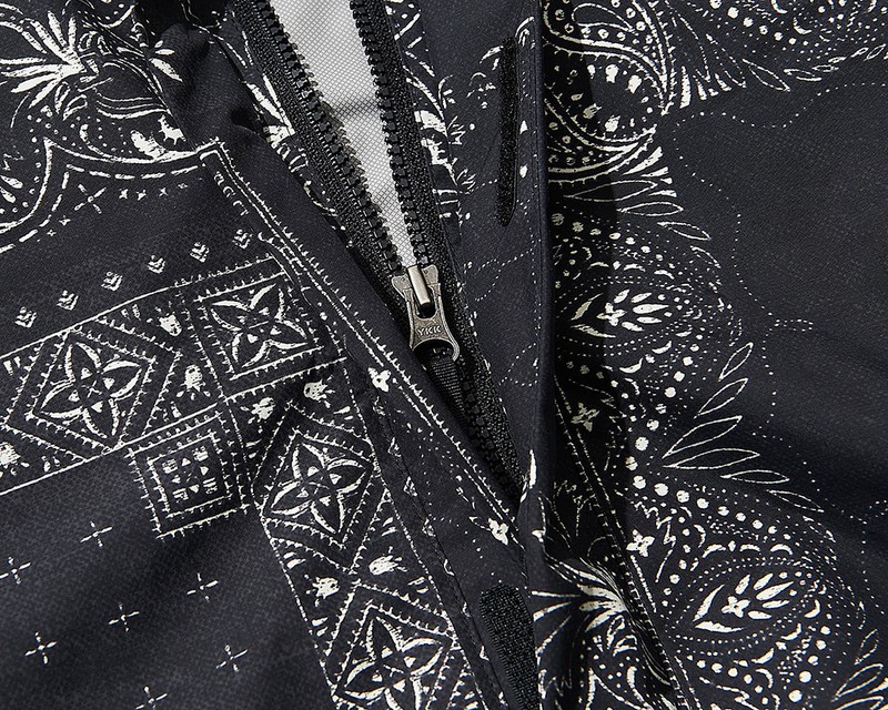 今回ご紹介するのは、ノベルティドットショットジャケット。トレッキングや日帰り登山に最適な2.5レイヤーの防水シェルが、モノトーンのバンダナ柄をまとうことでストリートな1着に仕上がっています。