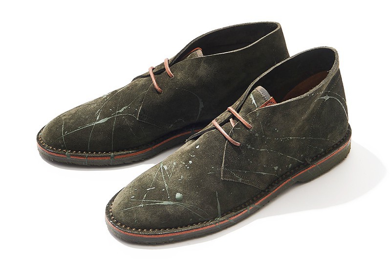 元来ミリタリーアイテムであるデザートブーツゆえ、オリーブグリーンとの相性の良さは言わずもがな。天然ラバーのソール、ステッチダウン製法、2アイレットといった伝統的な作りやディテールはそのままに、同色のペンキを散らしたような加工を施し、雰囲気のある仕上がりに。いつものジャケパンやブルゾンの着こなしが一気に今時に見えますよ。