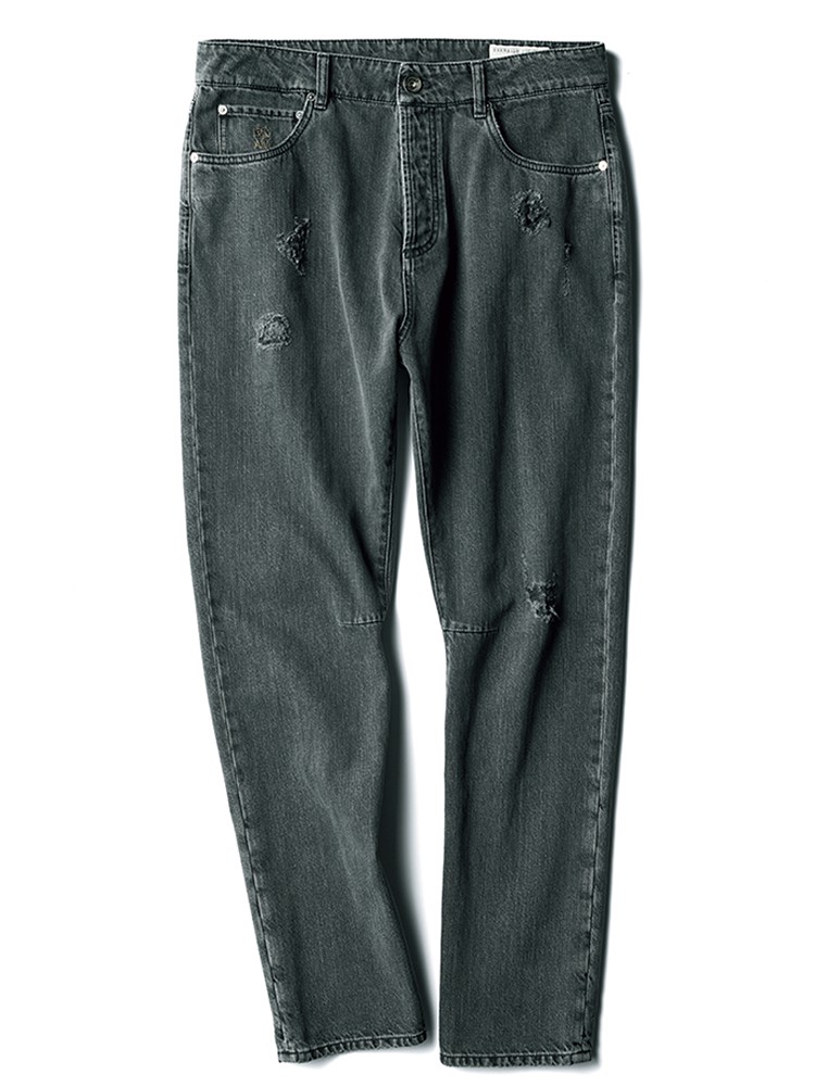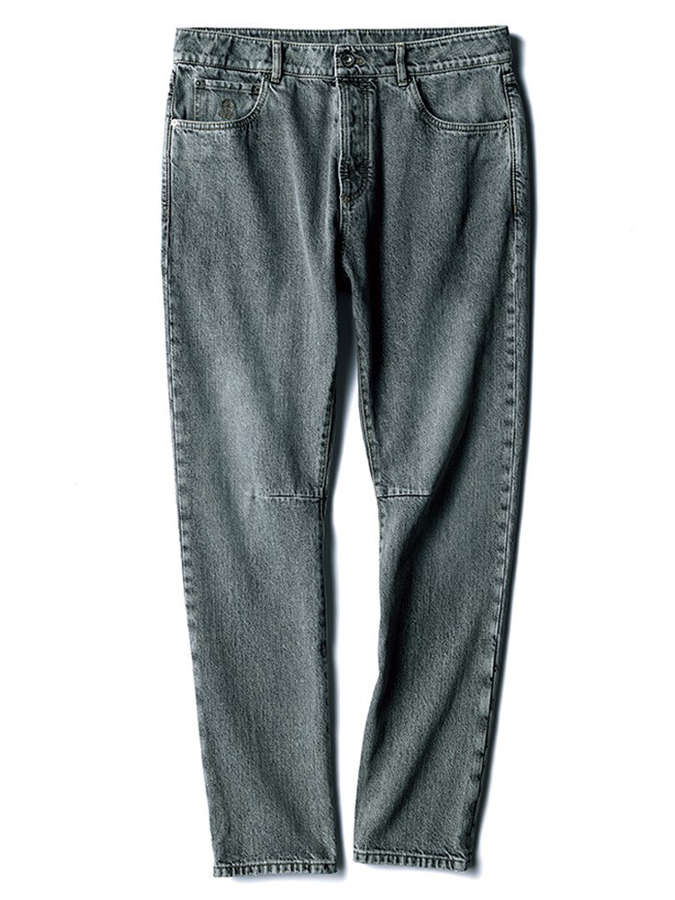 黒デニといえば従来はちょい不良(ワル)やモード、都会的といったイメージですが、そうした既成概念から一歩抜きん出るのが「ブルネロ クチネリ」の一本。腰元が適度にユルく、裾に向かってキュッとテーパードするレジャーフィットを採用。