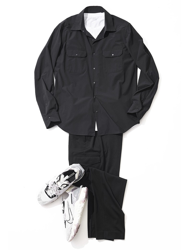 これからの季節に一枚あると便利なシャツですが、今選ぶならテック系のシャツも選択肢に入れておくのがいいでしょう。体の動きを妨げないストレッチ素材、撥水などの機能を盛り込みながら、見た目はベーシック&シンプルゆえヘビロテ間違いなし。中には速乾機能もあるので時短にも繋がりますよ。