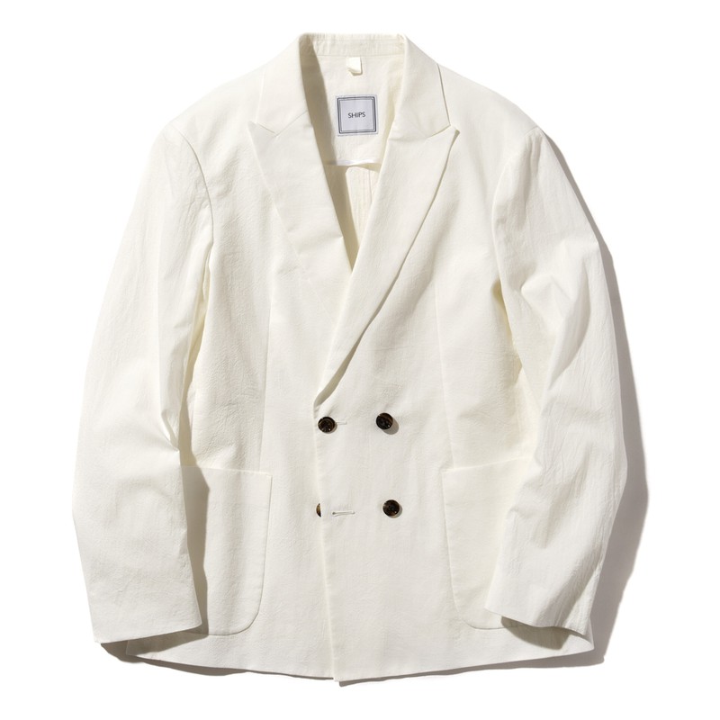 とはいえ、正直ハードルが高いという印象が強いかと。白ジャケットはキザに見えるという人も、少なくないはずです。それが白ジャケットの魅力ではあるんですが、素材によっては気取った印象を軽減できます。ドライな素材感やストレッチ素材、またはシアサッカー織りなど、軽快さが伝わる一着を選ぶと、肩の力が抜けた雰囲気になります。それでも抵抗がある場合は、こなれ感のあるオフ白を選ぶというのも手ですよ。