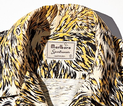 この狼柄、生地屋が複数のメーカーに卸していたためなのか、いくつかのブランドからリリースされた形跡があるのだが、この個体はMarlboro Sportswear製。1940年代からベタなネルシャツから、一風変わったレーヨンシャツまで製造していたブランドだ。