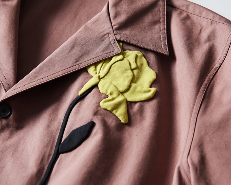 胸元に飾るべきは、一輪挿しのような美しいお花です