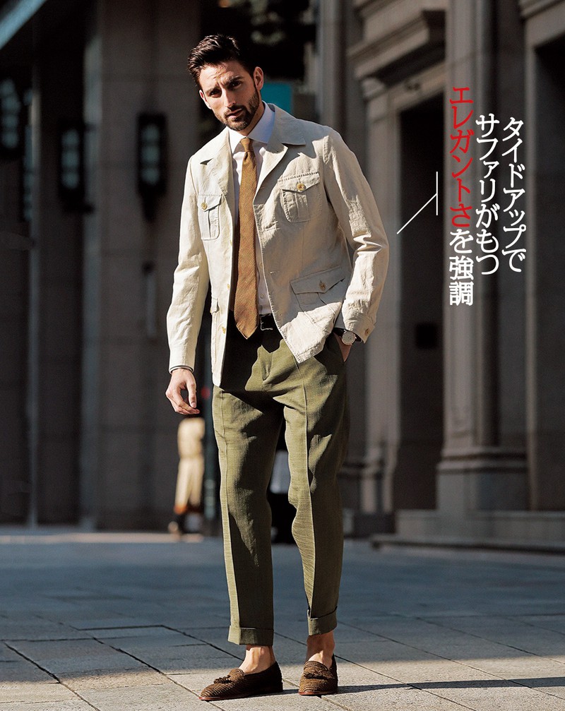 今季、大人が羽織るべき夏アウターの筆頭といえば、ミリタリー由来の男らしさやユニフォーム的な精悍さを併せもつサファリジャケット。キッチリからリラックスまで男らしくこなせて、汎用性の高さもピカイチですよ。