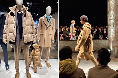 右のトッド スナイダーのランウェイ、左のヘルノのスタンドをはじめ、いま改めてキャメルなムードが満載。モダンなキャメル、要注目です!