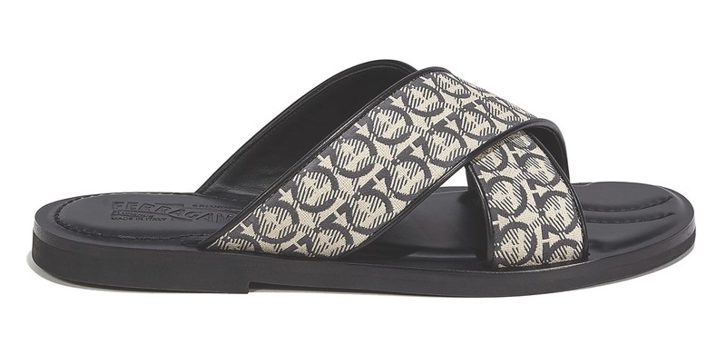 軽いラバーソールに印象的な幅広のクロスベルトを組み合わせたシンプルさが魅力です。とはいえ、ベルトにはジャカード織りで、ブランドを象徴するガンチーニ・ モノグラムがばっちり取り入れられていますから、高級感は申し分ありません。インソールにもこれまたガンチーニを型押し。そのうえ、インソールはパッド入りで快適さも確保しているのですから、恐れ入ります。