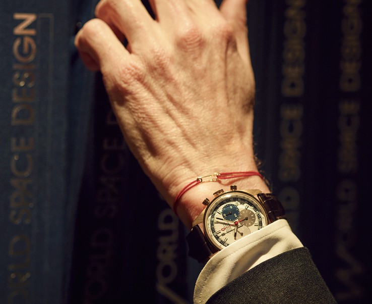 紐ブレスはスポーツやカジュアルに加えて、合わせ方次第ではビジネスにも流用できます。それがヘッド部分と時計のケースの素材を合わせるテクニック。統一感が生まれ、スーツに合わせても悪目立ちせずセンス良くリッチなアクセントを演出できるってわけ。 ※ ブレスレットは【04】と同じ、時計207万円/ゼニス