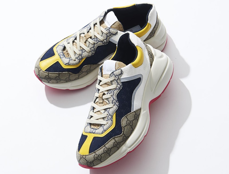 昨今の一大トレンドであるボリューミィなソールを備えたスニーカー〔ライトン〕の新作は、GGモノグラムパターンをあしらった多様なファブリック&多色をミックス。レザーやリフレクティブ素材のトリムを施した、ハイテクとローテク、双方の匂いがするデザインは、独創的かつ迫力満点です。白Tや白シャツを主役にした簡素なスタイルも、本作を投入すれば個性的なそれに大化けするでしょう。