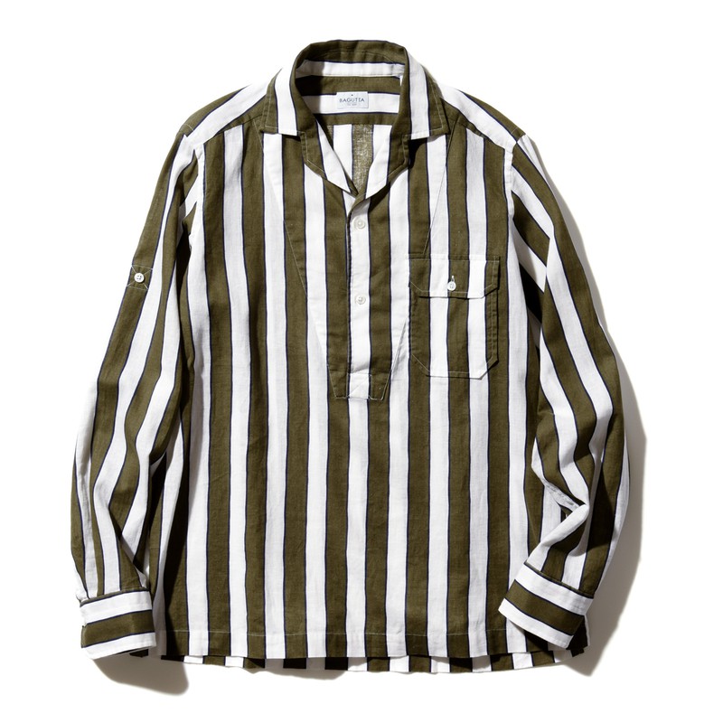 一方で、バグッタはカジュアルにおけるトレンドに敏感なことでも有名。今シーズンは、総柄や太ストライプなど遊びの効いた柄シャツがトレンドですが、バグッタも絶妙にツボを押さえたラインナップを披露しています。