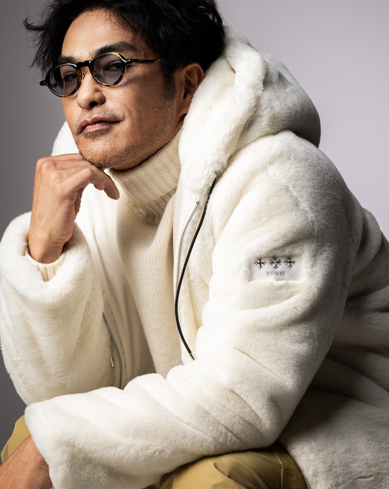アウターからインナー、パンツまで、オールモノトーンコーデを可能にする今季の「タトラス」。白と黒は色としてはシンプルですが、「タトラス」はファー素材だったり、シャカシャカ素材だったりで、いろんな色気を演出してくれます。例えば、白のファーならさわやかリッチな昼の色気、黒のシャカシャカならちょっとギラっとした夜の色気とかね。