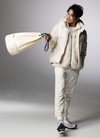 そんなアウターを白のワントーンでまとめることで、クリーンで上品、そしてリッチなコーデに。アウトドア&スポーティなアイテムゆえに、むしろそのギャップが色気に導いてくれるってこと。純白のフリース調ボアの腕に輝くメタリックシルバーのロゴも、リッチ感をさり気なく後押ししてくれます。