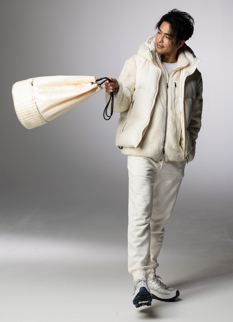 「白は好きな色ですが、全身白は新鮮。でもいざ着てみると意外になじみますね。柔らかい雰囲気になるのがいい。年齢を重ねると、周囲からどうしても構えて見られがち。品良く大人の余裕を出せるのが一番ですよね。おまけに軽いんだよなぁ。これ、リアルに欲しいです」