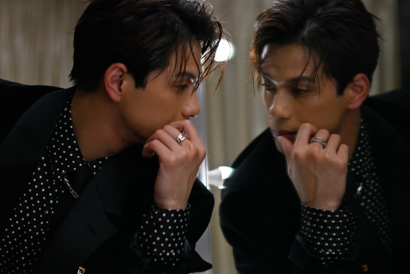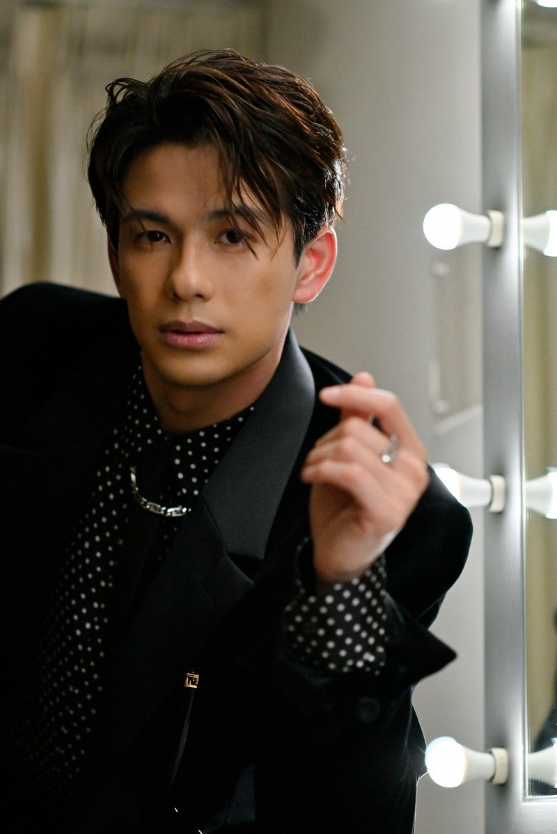 シャツはドット柄のシルクを。そしてネクタイの上からネックレスを光らせ、足元にはブーツを。そんな個性的に着こなしたフォーマルスタイルが、新しい役との出会いに戸惑う自分の背中を押してくれるのかも知れません。