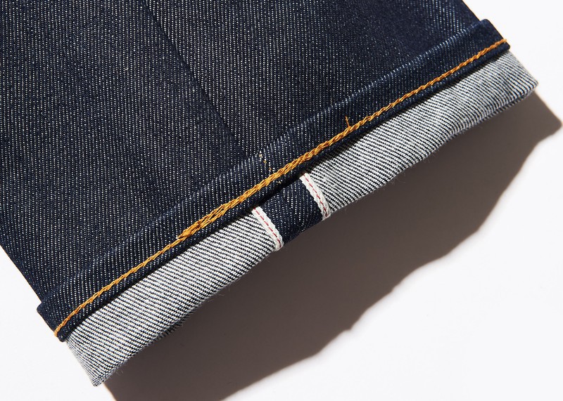 裾をペロリと折り返してみますと、ちゃんとセルビッジ仕様になっておりました。これは生地の端の部分をそのまま生かして使用していた時代の名残。ビンテージデニム好きなら、押さえておきたいポイントですよね。