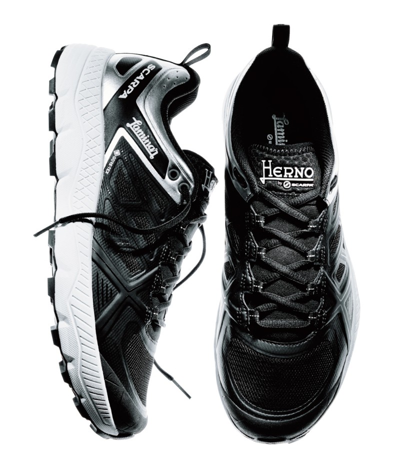 ▲ スカルパ持ち前のグリップ、クッション性は当然のこと、ラミナーの機能を付加したこちら、機能美、造形美ともに◎◎◎。ブラックのほかに、ホワイト、グレーも揃います。 また、9月頃を目安に買えるLEONでも取り扱い予定ですよ! 2万9000円/ヘルノ(ヘルノ・ジャパン)