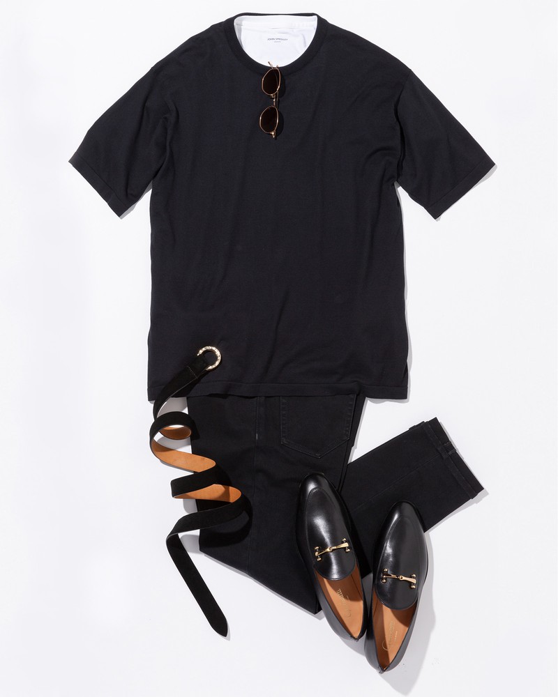 足元のゴールドでモノトーンコーデは艶っぽく化けるんです