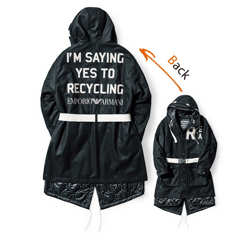 2020年秋冬からエンポリオ アルマーニにてスタートする『R-EA』ラインもサスティナブルな視点に立ってモノ作りがされています。ちなみにワークウエアから着想を得たこちらのコートにはリサイクルウールとリサイクルナイロンを採用。それでこれだけ洒脱だなんて非の打ち所がありませんね。