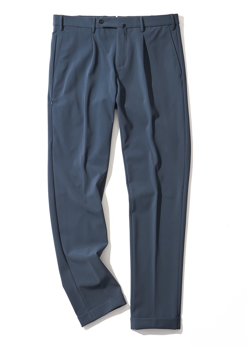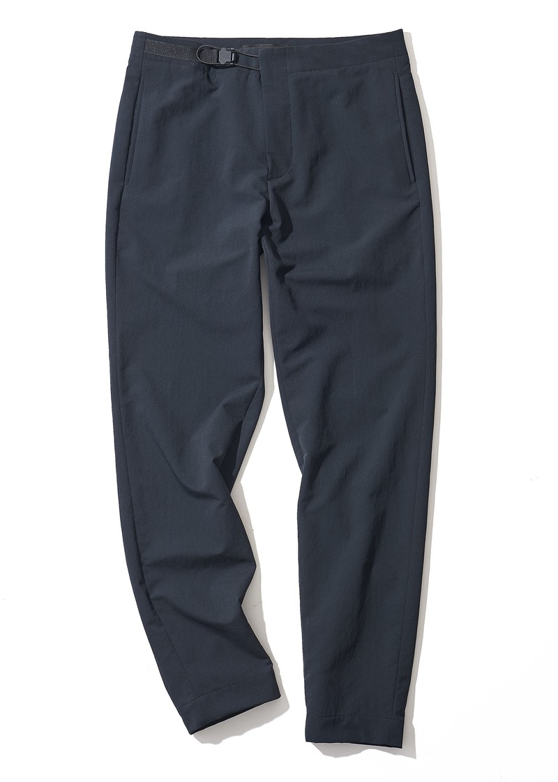名が体を表す「アクティブ」ラインの一本は、素材にナイロン78%、ポリウレタン22%のジャージー素材を使用。混率からもうかがえるように、360°の高いストレッチ性を備えているのが特徴で、細身のテーパードシルエットからは想像もつかない楽ちんな着用感が味わえます。UVカットや吸湿速乾性、形状記憶性といった機能も充実。太腿脇のモバイルポケットが、これまた重宝するんですよ。