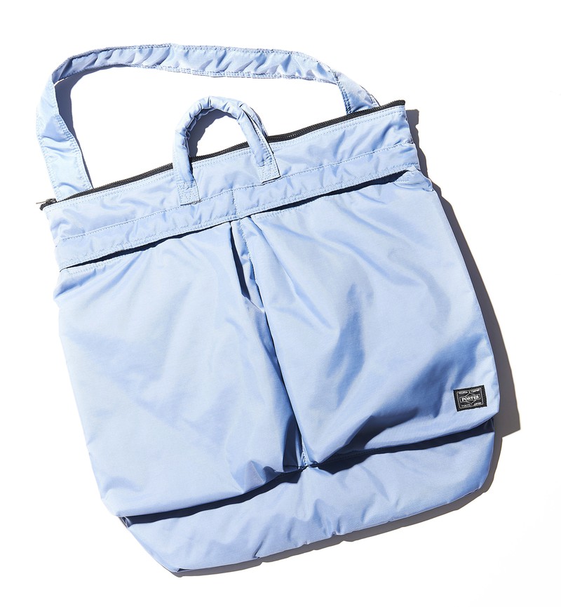 ポーターブランドの中でも、アイコン的存在のヘルメットバッグ。フロントに配した2つの大きなポケット、手持ちにも肩掛けとしても使えるハンドルとストラップが実用的。爽やかなこちらのブルーは、熊本と長野の県花であるリンドウから抽出した染料による竜胆染め。ナイロンに色素を定着させるのは難しいところを、特許技術によって実現!