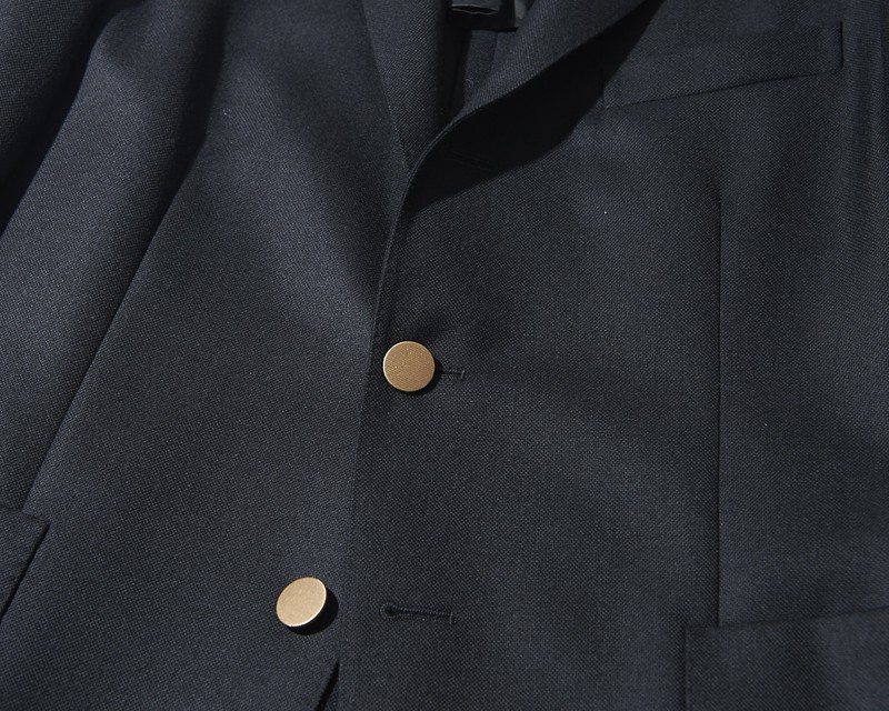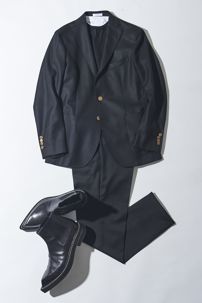 そんな“黒ブレ”をクールに失敗なく着こなすテクニックとして、LEON.JPはパンツやシューズまでブラックに統一した真っ黒スタイルをオススメする次第。というのも、モードな洒落感に通じるブラックスタイルにこそ、アクセサリー的な輝きを放つメタルボタンが小粋にマッチするから。