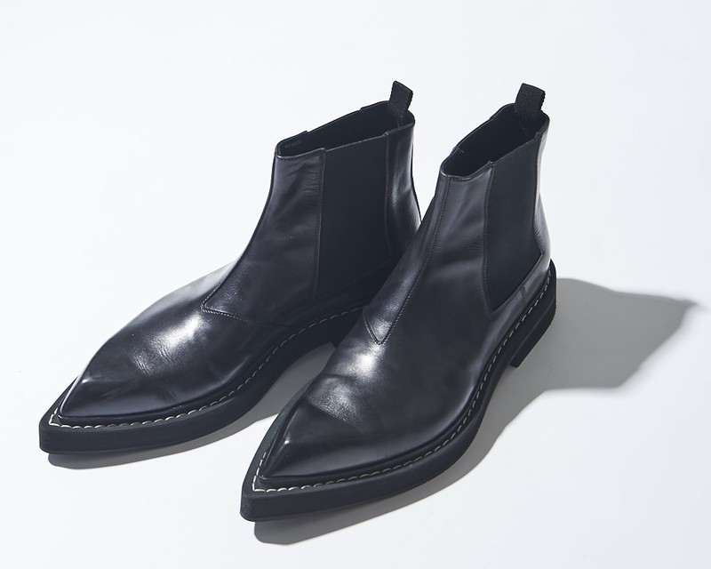 足下はシャープなレザーブーツでキマり!