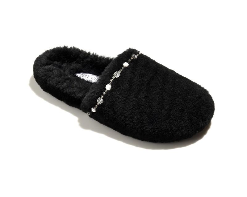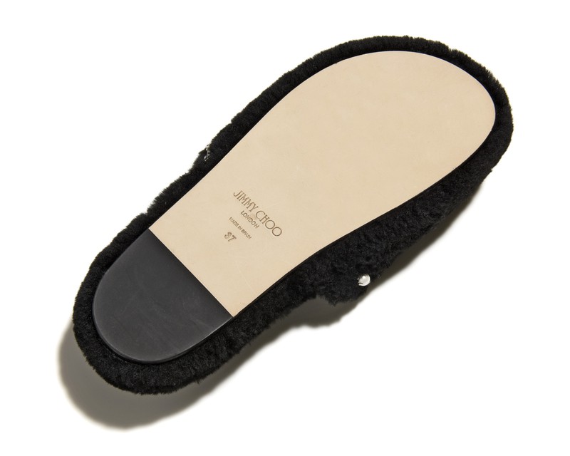 こちらはアリエット フラット。フワフワのボアは、リアルなシアリングを採用し贅沢気分を堪能させてくれます。アッパーにデザインされているのが、パールとクリスタルをあしらったストリング。ラグジュアリーなその仕上がりは、もちろんプレゼントにもうってつけです。