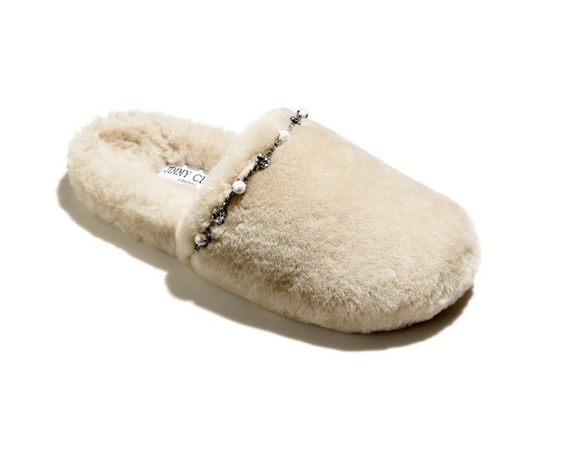 自分で履くのももちろんいいですが、本領を発揮するのは女性をおウチに招いた時。フワフワのシアリングにパールとクリスタルを配したラグジュアリーなスリッパなら、きっと喜んでくれるはず。その心地良さと可愛さに、思わず長居してくれるかも知れませんしね(笑)。