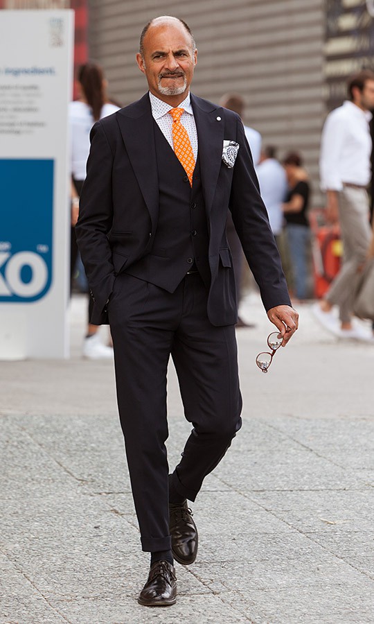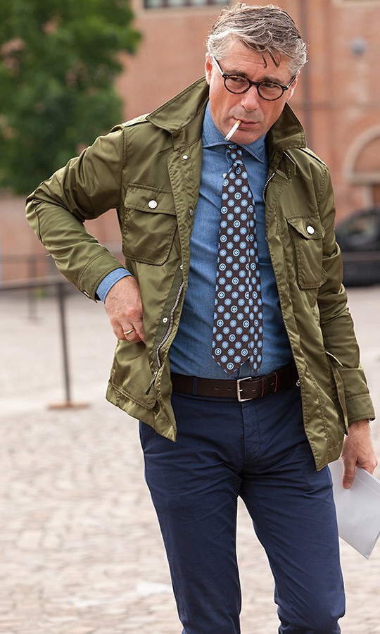 これはイタリアオトコとて同様で、皆さんベースはコンサバティブ。そんな中でポイントに派手色をちょい挿しすることで華やかさや色気、大人の茶目っ気を巧みにプラスしているんです。この絶妙な塩梅を参考にぜひお試しくださいませ。