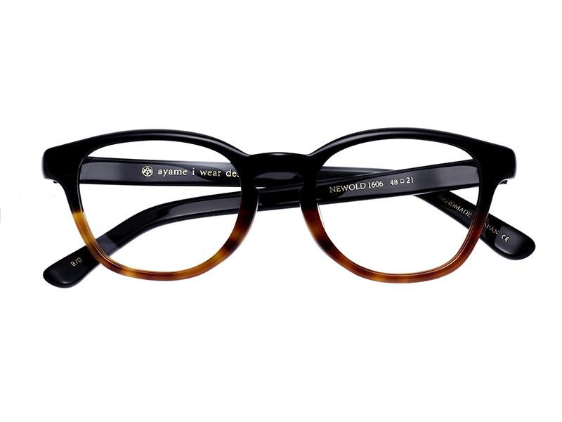 国産の気鋭ブランドが創業時から作り続けている不動のバタフライシェイプ「ニューオールド」。上半分を黒、下をべっ甲調のデミ柄に彩色した2トーンカラーなら、抜群の顔馴染みはそのままにほどよく軽快なイメージも手に入ります。3万円/アヤメ(カルネ)