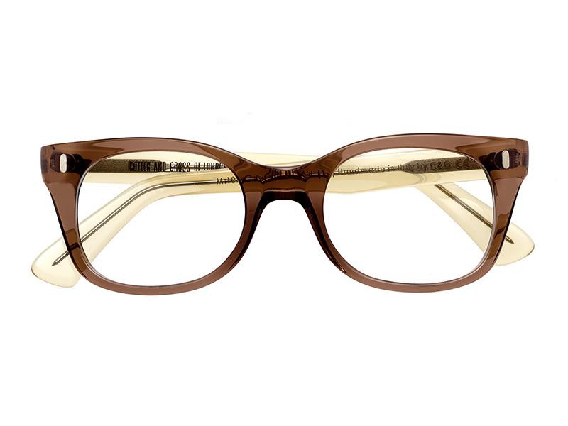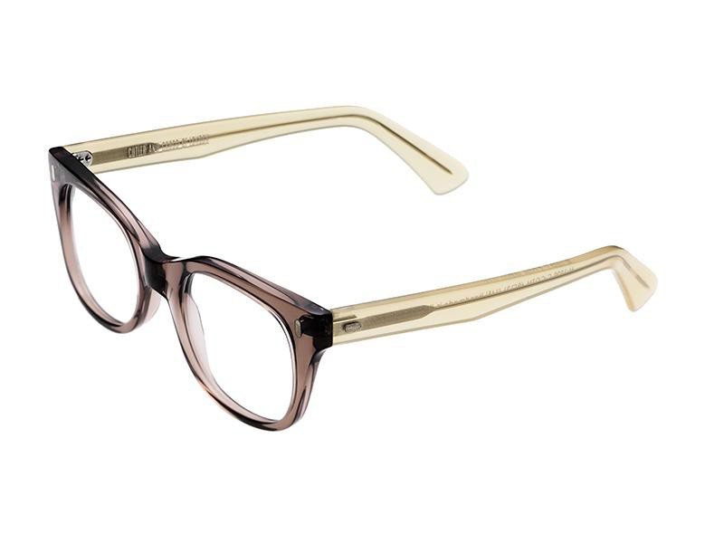 黒セルではお馴染みのボリューミーなウェリントンも、透け感のあるバイカラーならお茶目にして軽快。フロントはクリアブラウン、テンプルがクリアベージュのレトロな茶系のコンビネーションなんて、他ではまず見つかりません。3万7000円/カトラー アンド グロス(サンライズ)