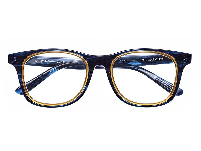 クリアネイビーのマーブル模様が艶っぽいウェリントンに、飴色のインナーリムをはめ込んだテクニカルな「ハル」。目元が際立つバイカラーはお茶目なオトナの十八番。シンプルなスタイリングの差し色にもうってつけです。2万2000円/ボストンクラブ(グロス)