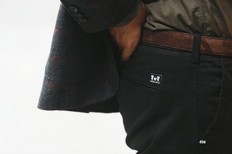 キーとなるブラウンのパンツはインコテックス。シューズはエルメネジルド ゼニアで足元を締めます。
