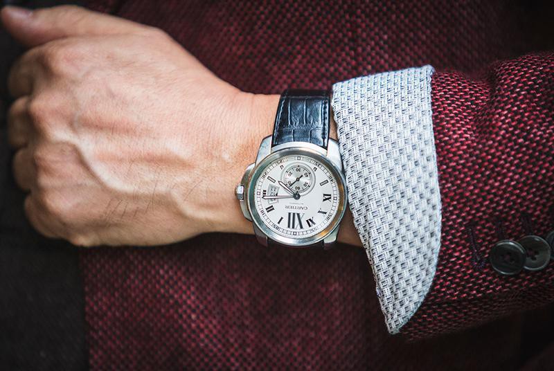 腕元にエレガントな雰囲気をもたらすカルティエの時計。