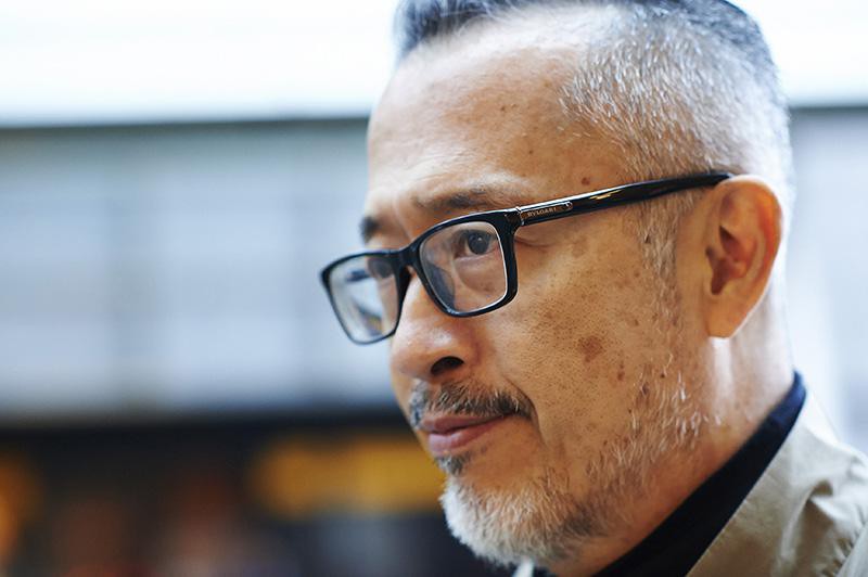 合わせているアイテムは、どれも定番的なもので、いたってシンプルなのに、この貫録は一体どこからくるのでしょう? あえてシワ感のあるコートが年季の入ったようにも見えてオヤジさんの貫録を高めています。180cmの高身長ゆえコート姿のバランスのよさはご覧の通り。ほかはタートルネックのニットにジーンズ、ローファーといたってオーソドックス。