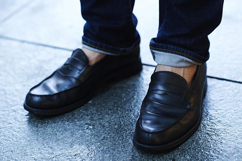 その一方で、ジーンズのロールアップは軽く一折りだけで、無造作な雰囲気。決めすぎないディテールが上級者といった風情なのです。