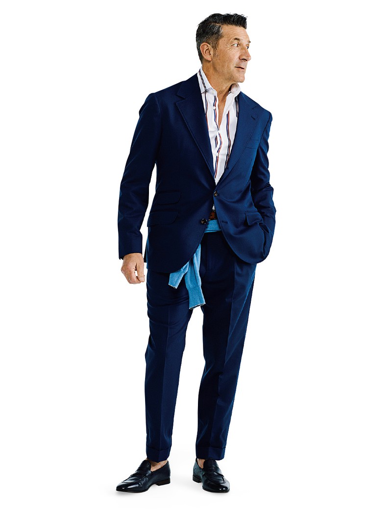 縦縞のピッチ幅は「ちょい太」がマスト。細すぎるとビジネス然としてしまいますし、逆に太すぎても道化のようになりますからご注意を。
