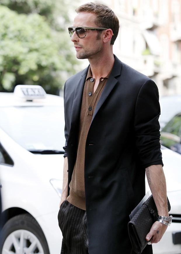 メッシュのニットポロが、モードで脱ブナンなムードです。薄手のチェスターのようなコートは、腕捲りして軽快にこなすのが吉。サングラスやクラッチバッグなどの小物使いも利いていますね。