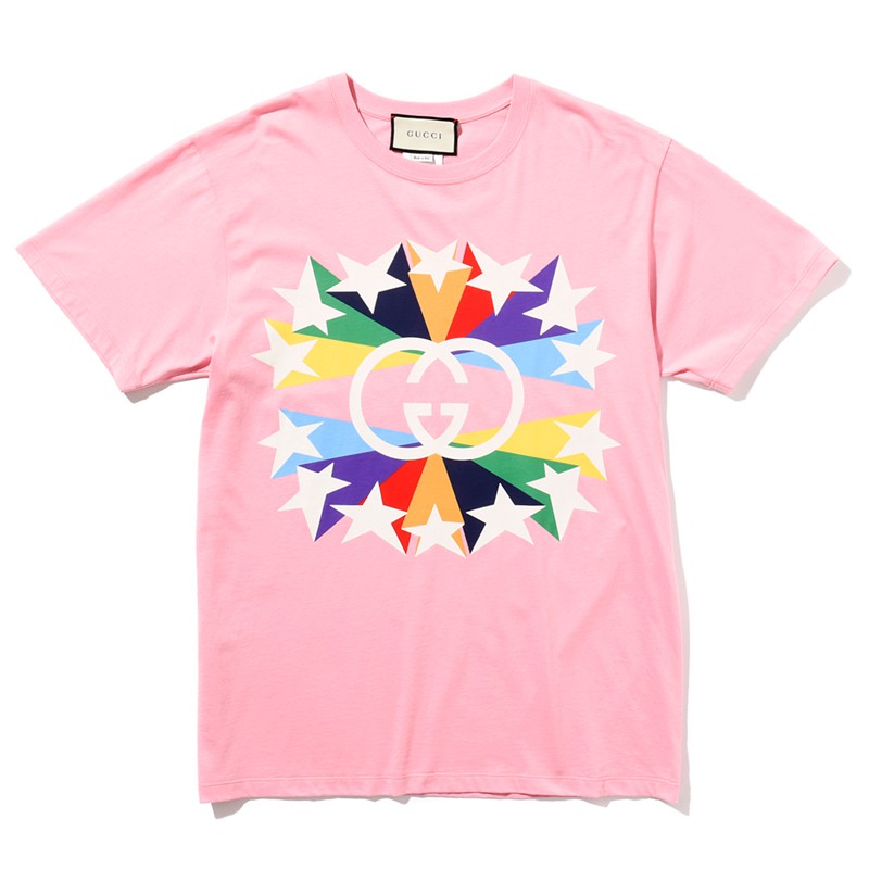 星空にインスピレーションを得た、スターモチーフが目を引く一枚。中央には、インターロッキングGをあしらい、シンボリックなプリントに。ボディカラーのピンクも然り、ちょっとナードな雰囲気が魅力です。せっかく遊びを効かせるなら、こんな派手な一枚がイイですね。