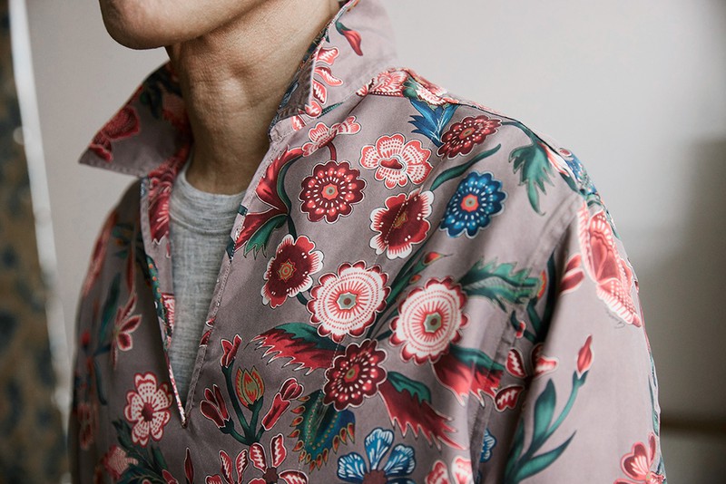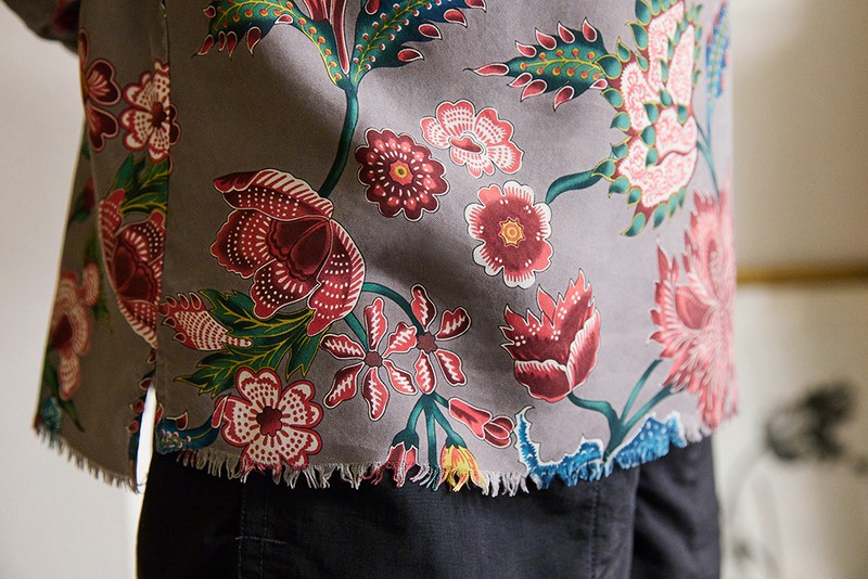 シルクの花柄シャツで見せる大人のショーツスタイル