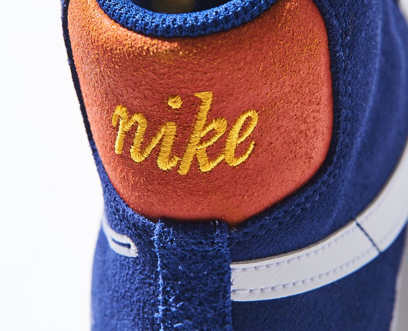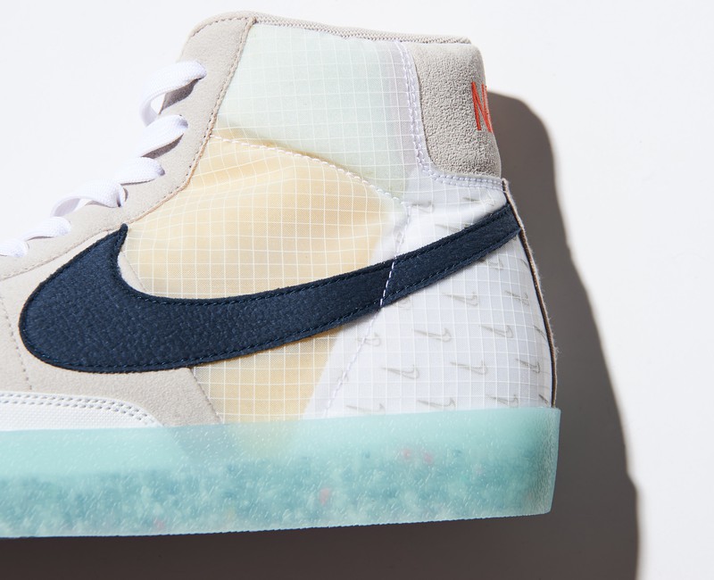 ともに77年のクラシックディテールに倣った「ナイキ ブレーザー MID '77」がベースですが、定番のそれと比べれば印象の違いは歴然。