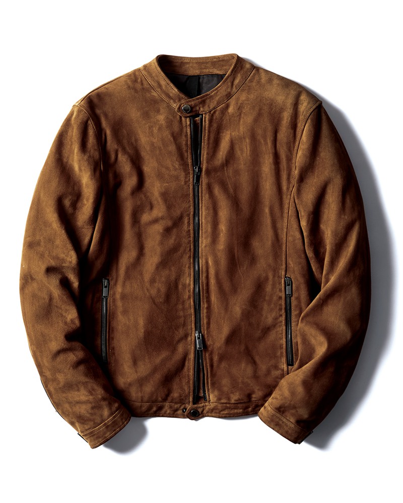茶スエードは日焼け肌と好相性なだけではありません。耐久性などではなく、ビロードのような美しさを追求したスエードは本来リッチの象徴。ゆえに日焼けした胸元がワーク系に見えず、リッチでセクシーに映るってわけ。
