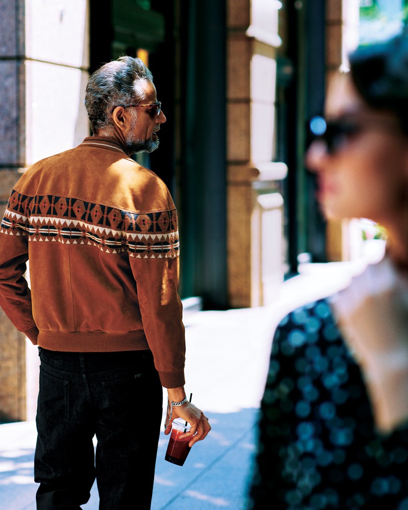 具体的にいうと、遠目にはレザーに見えないアイテムがすれ違いざまレザーとわかる「まさか!」な一着を選ぶのです。「レザーのはずがない」という先入観を逆手に取った手法が、見知らぬ彼女の"二度見"を誘発します。