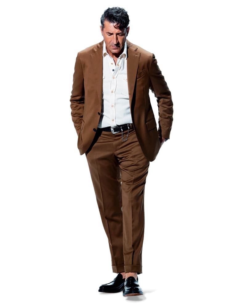 ▲ スーツ16万5000円、シャツ4万2900円/ともにラルディーニ(トヨダトレーディング プレスルーム)、時計96万8000円/ゼニス、ベルト1万1000円/ジエダ(キクノブ トウキョウ)、靴21万7800円/ジョンロブ(ジョン ロブ ジャパン)
