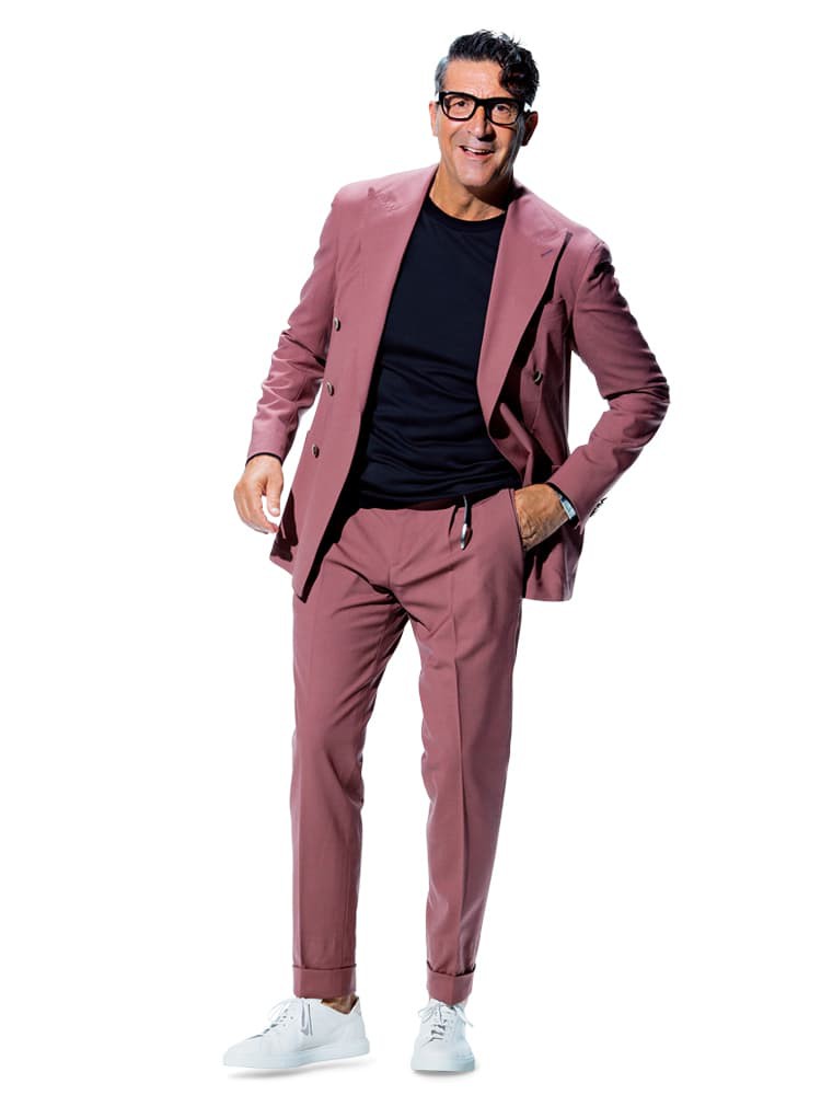 カプリ島に咲く一輪の花のごとしなピンクスーツ。肌なじみの良いダークピンクゆえ、着こなしも容易なのです。