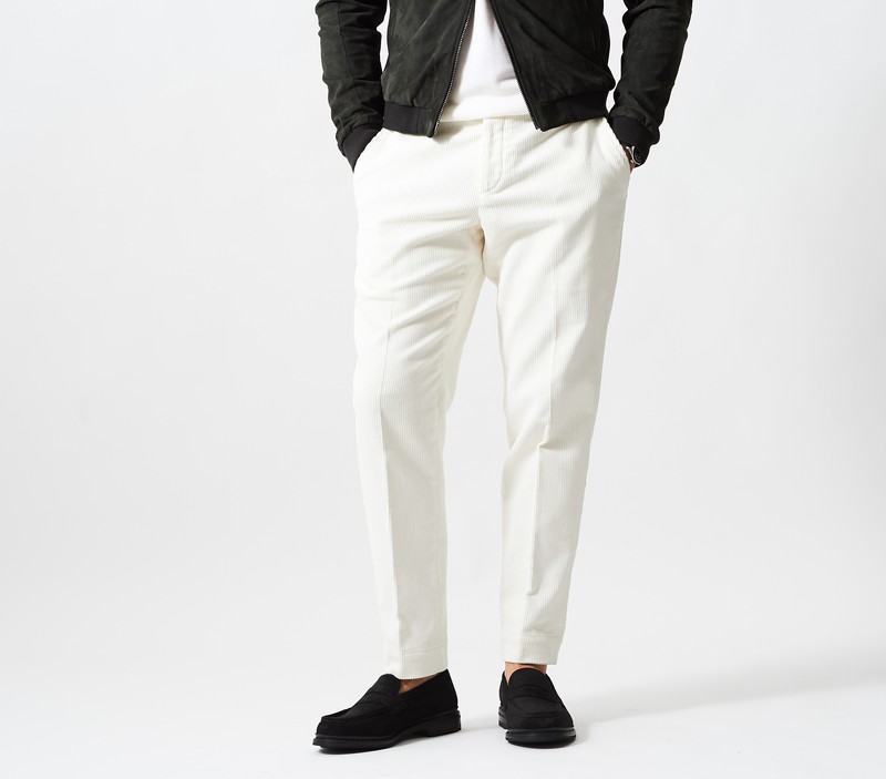 ただし、この繊細な味わいをフルに生かすためには着こなし方が重要です。あえてインナーやパンツに明るいホワイト系を選んで、クリーンな要素を積極的に組み合わせるのが効果的。そうすることで繊細なダークカラーの味わいが、より引き立って見えるのです。