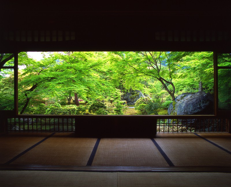 宝蔵院書院から新緑を望む。