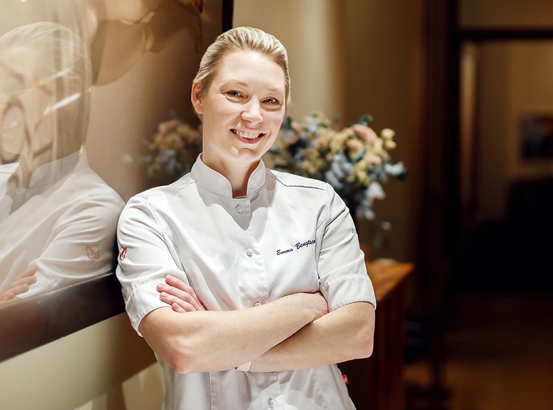 ▲ 「Aquavit」シェフのエマ・ベントソンさん。繊細なプレゼンテーションの料理が多く、ハマチを使ったクルドの見た目も華やか。
